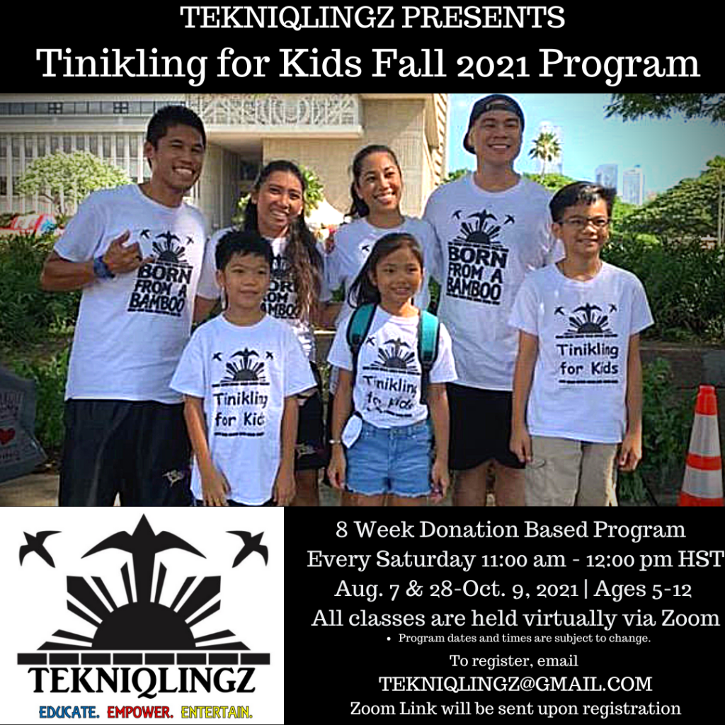 Please join us for our new Tinikling for Kids Fall 2021 Program! Open to all kids ages 5-12.